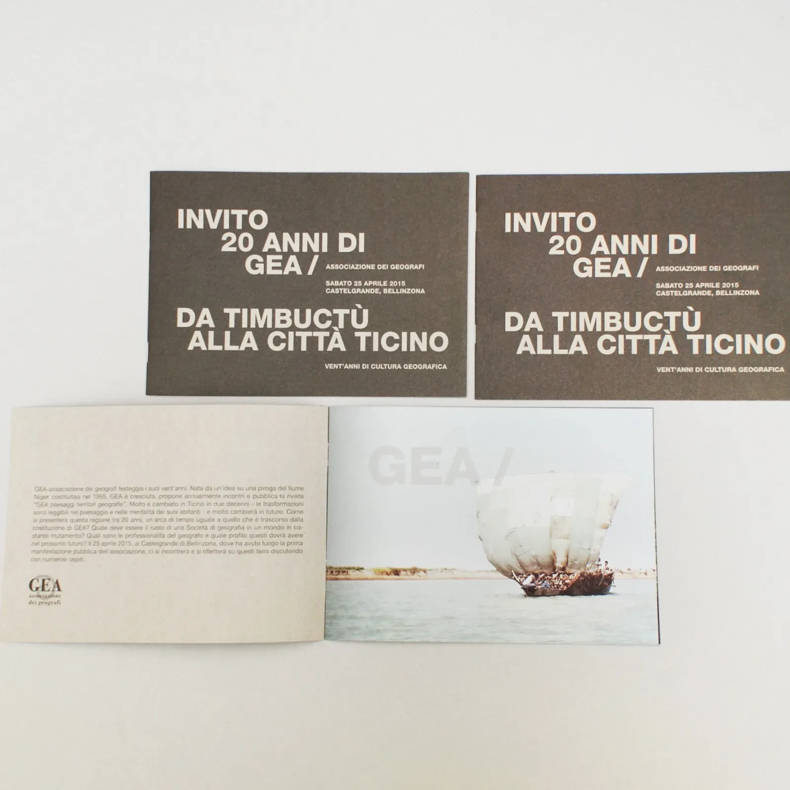 GEA, associazione dei geografi si è costituita con l’obiettivo di diffondere la cultura geografica e di promuovere la figura e le competenze professionali del geografo. Si occupa di divulgazione, di ricerca, di politica del territorio e, con le sue attività pubbliche, mette a disposizione della collettività gli strumenti per riflettere sui temi territoriali. Pur operando nella realtà culturale della Svizzera Italiana, apre i suoi orizzonti anche su altre realtà mantenendo contatti con centri di ricerca e associazioni analoghe in Svizzera e all’estero.