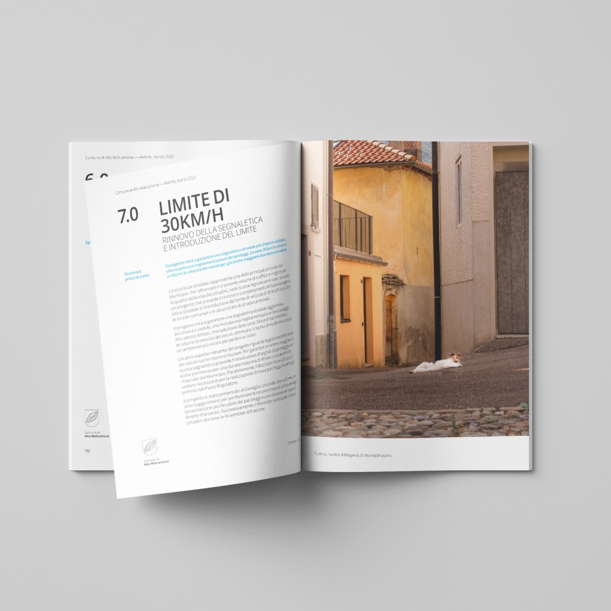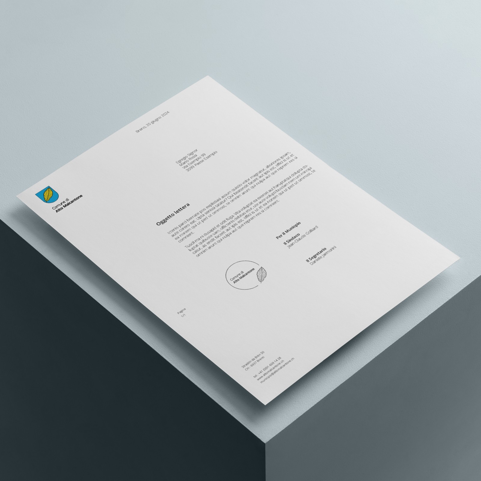 A partire da questi valori, è stato sviluppato un nuovo progetto di immagine coordinata, con l’obiettivo di offrire al Comune un’identità visiva più chiara, coerente e rappresentativa. Il lavoro grafico comprende la creazione di un sistema visivo armonico, rispettando le cromie dello stemma araldico già esistente, applicabile a tutti i materiali di comunicazione istituzionale.