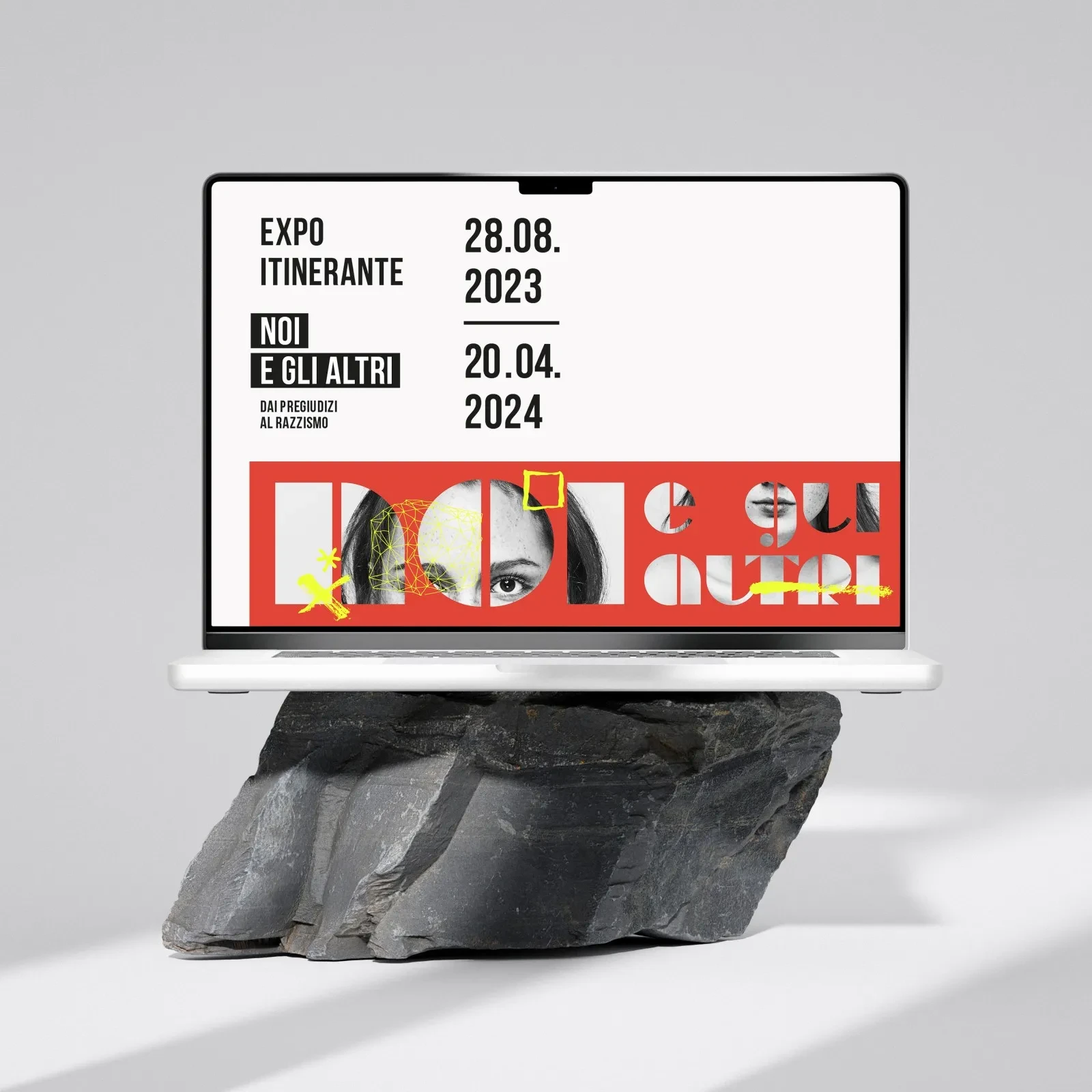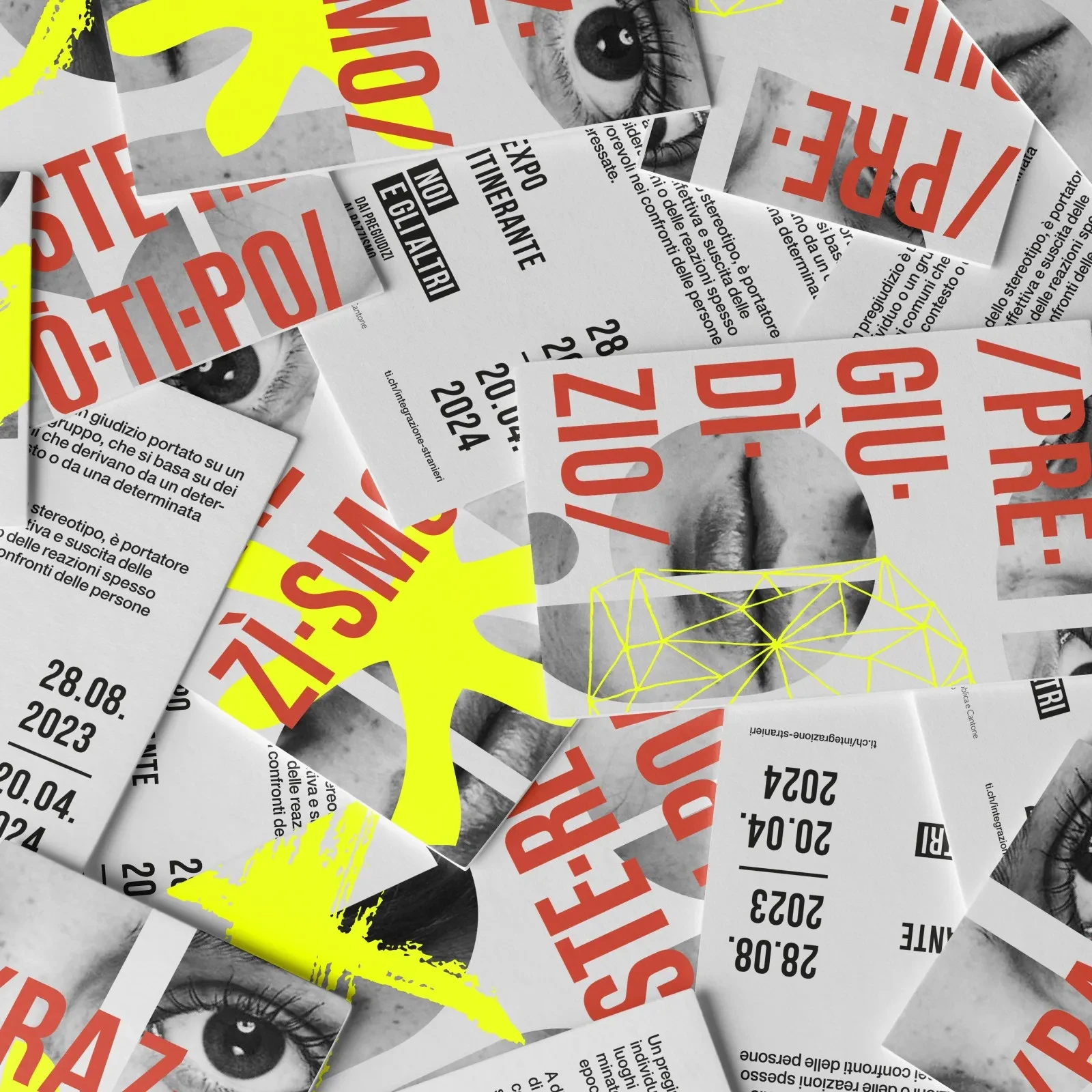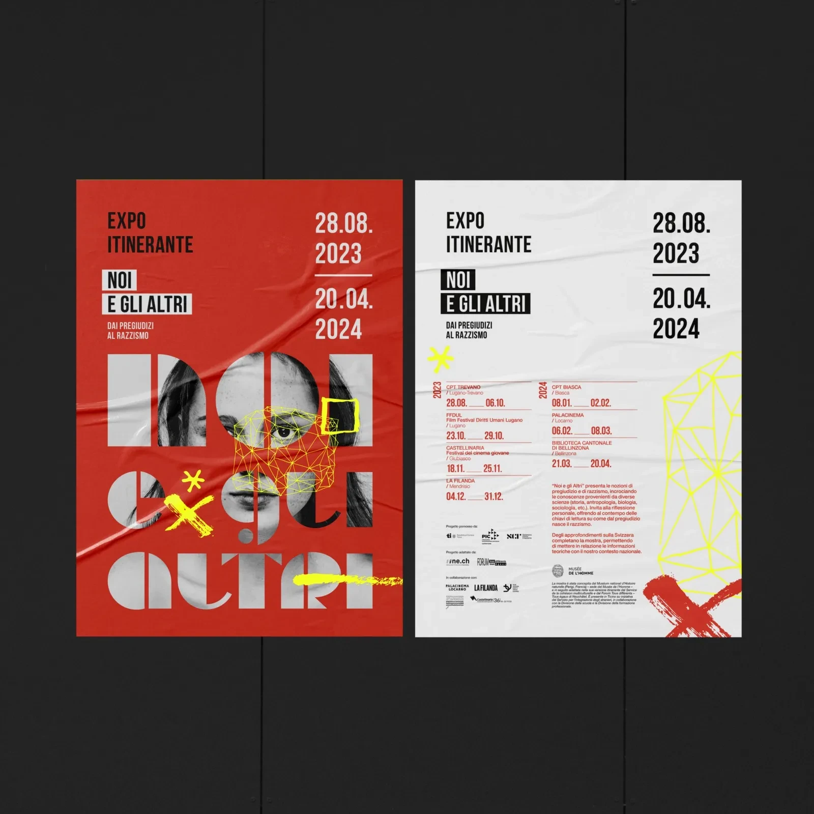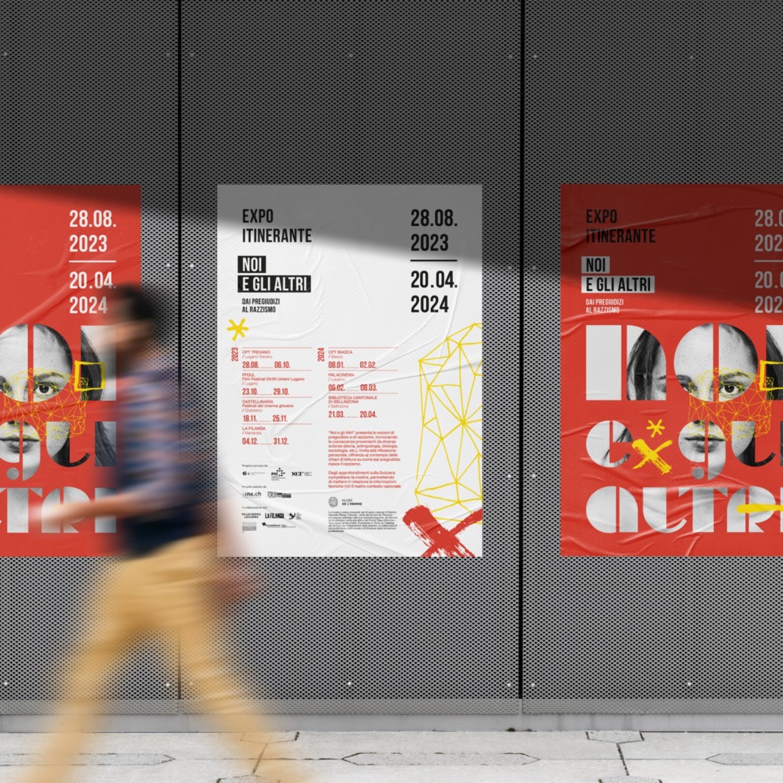 Progetto grafico promozionale — esposizione itinerante contro il razzismo.