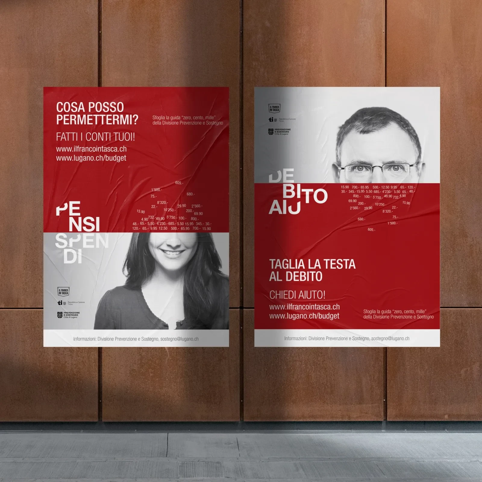 Concetto comunicativo PensiSpendi e DebitoAiuto, progetto grafico